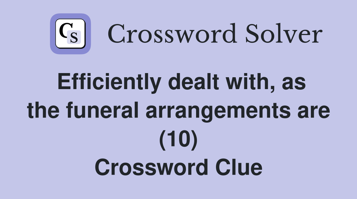 Efficiently dealt with, as the funeral arrangements are (10 Funeral Fire Crossword Clue 4 Letters The crossword solver finds answers to classic. We have found 40 possible answers for this clue in our database. A further 2 clues may be related. We found one answer for the crossword clue funeral fire. Below are possible answers for the crossword clue funeral fire. All crossword answers with 4 letters for funeral fire found in daily crossword puzzles:. Funeral Fire Crossword Clue 4 Letters.